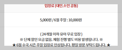 - 식물원 입장료: 1인 5,000원 (24개월 이하 유아 무료)